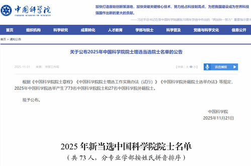 In accordance with the provisions of the Bylaws for the Members of the Chinese Academy of Sciences, the Implementation Measures for the Election of New Academicians of the Chinese Academy of Sciences (Trial), and the Election Procedures for Foreign Academicians of the Chinese Academy of Sciences, the Chinese Academy of Sciences elected 73 new Academicians and 27 new Foreign Academicians in 2025. Professor Li Shutao, President of Chang'an University, was elected as an Academician of the Chinese Academy of Sciences.