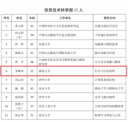 Academician Li Shutao has long been engaged in research within the field of image information fusion. His research achievements have been honoured with two National Natural Science Awards (Second Class) (both ranked first), two National Science and Technology Progress Awards (Second Class) (ranked third and fifth), the Second Prize of the National Teaching Achievement Award (ranked first), the 2023 IEEE GRSS Education Award, the National Innovation Pioneer Award, the Wu Wenjun Artificial Intelligence Outstanding Contribution Award, the IEEE Geoscience and Remote Sensing Society (GRSS) David Landgraber Award, and the IEEE GRSS Most Influential Paper Award.